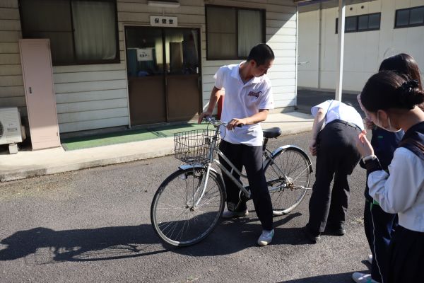 6月18日(水)に自転車点検を行いました。交通マナーを守ると同時に、一人ひとり責任をもって自転車の整備をして、交通事故を未然に防ぎましょう。