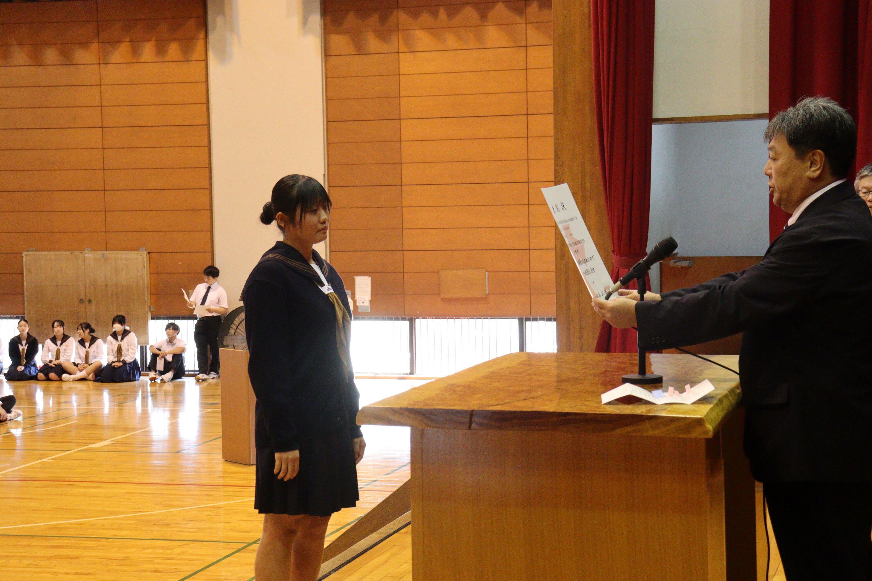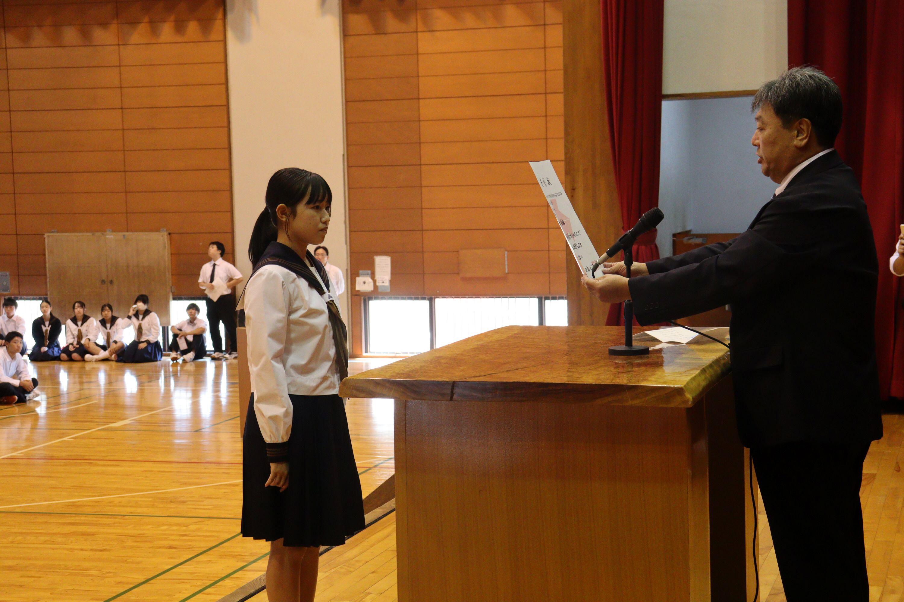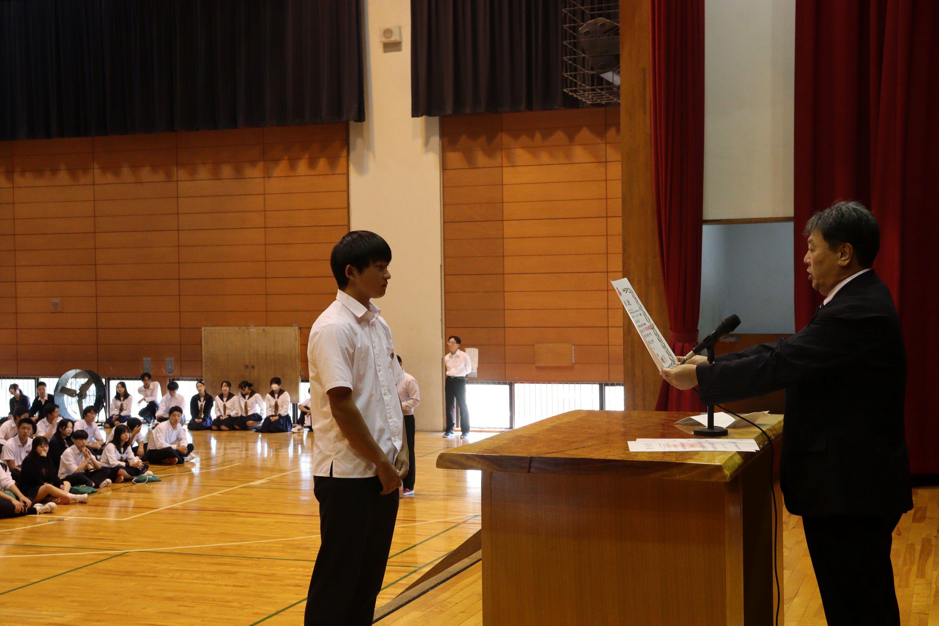 陸上競技部、弓道部、水泳部および馬術において優秀な成績を収めた生徒の表彰を行いました。