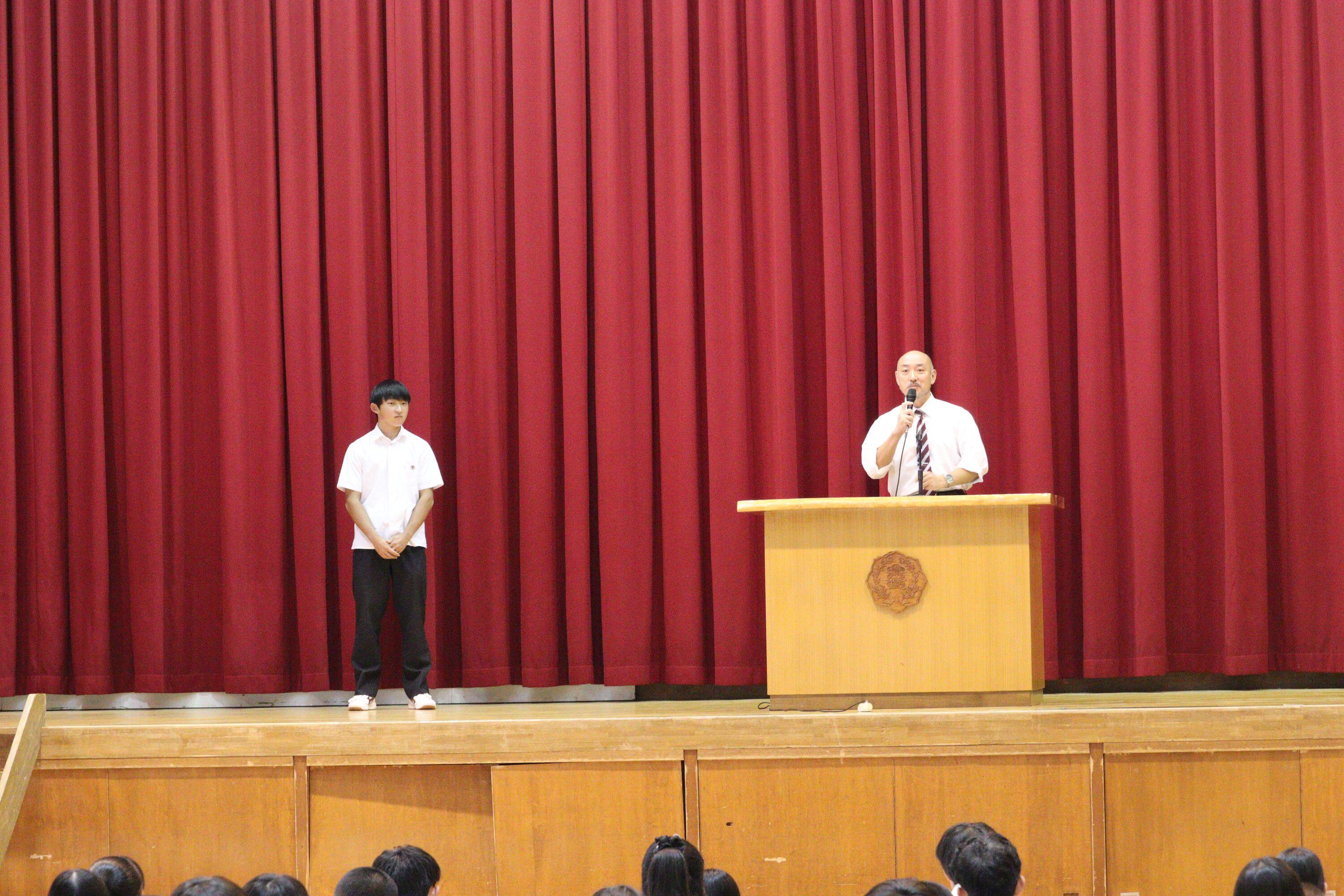 また、第29回関東高校選抜新人陸上競技大会への出場を決めた、2年生藤井隼大さんの壮行会を行いました。