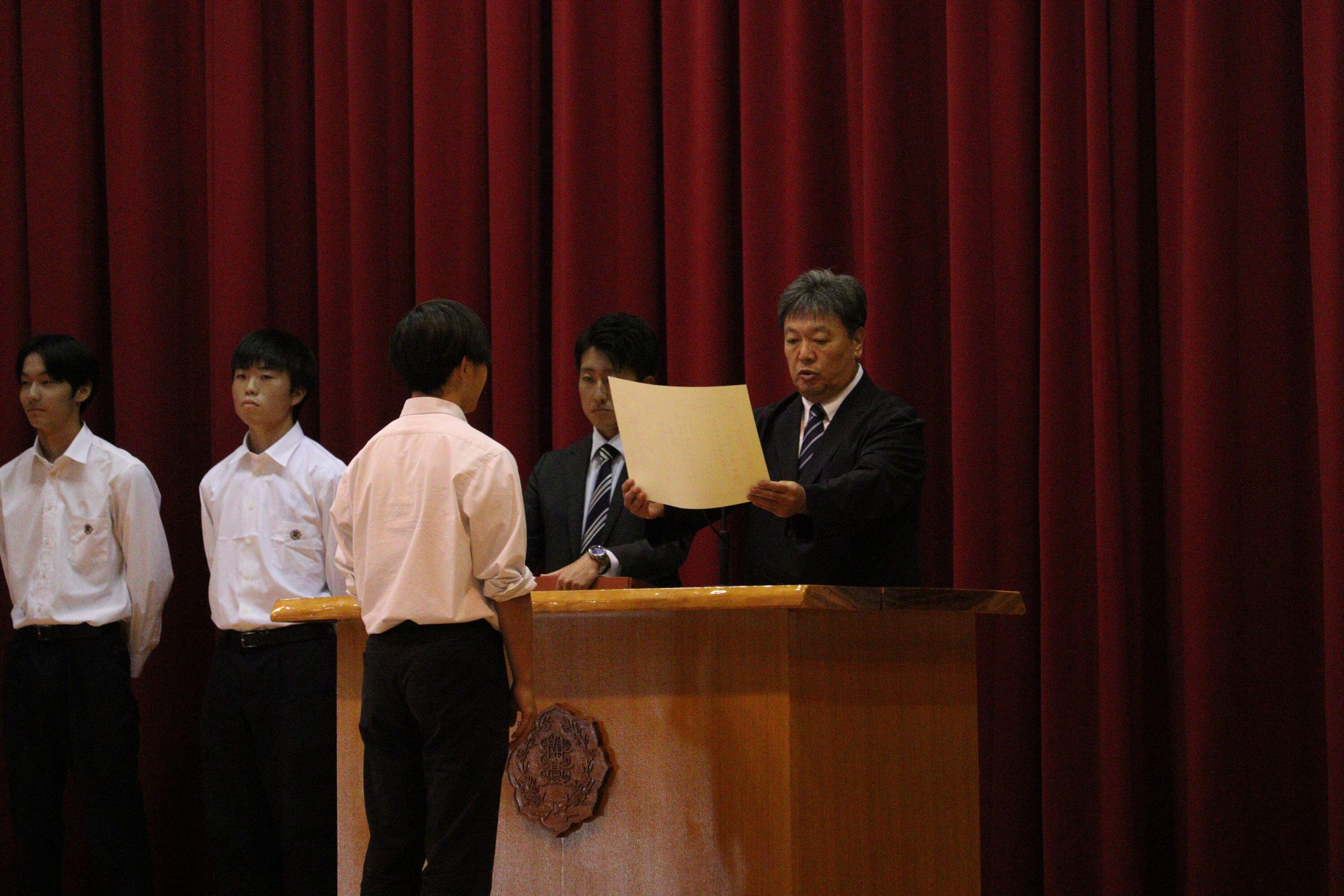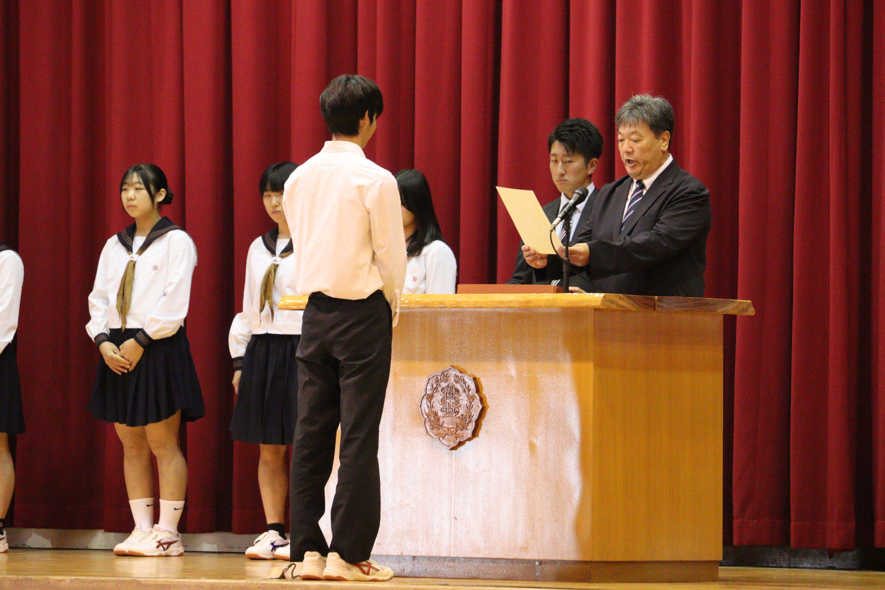 1年間活動を続けた旧役員には感謝状を贈呈し、代表して生徒会長が挨拶を行いました。