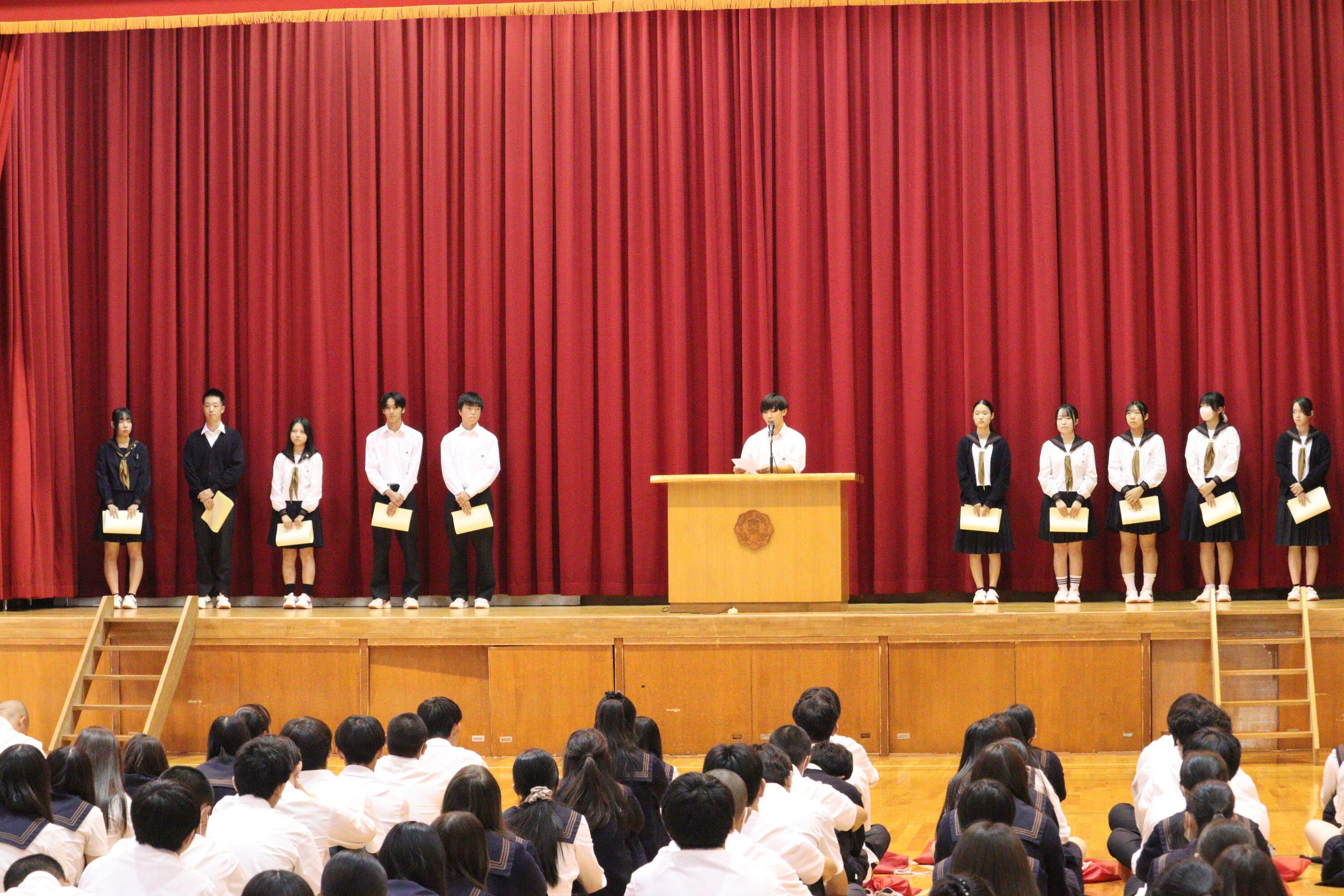 また、バトンを受け継いだ新たな新役員には、委嘱状を渡し、代表して新生徒会長がこれからの活動に対する決意を表明しました。
