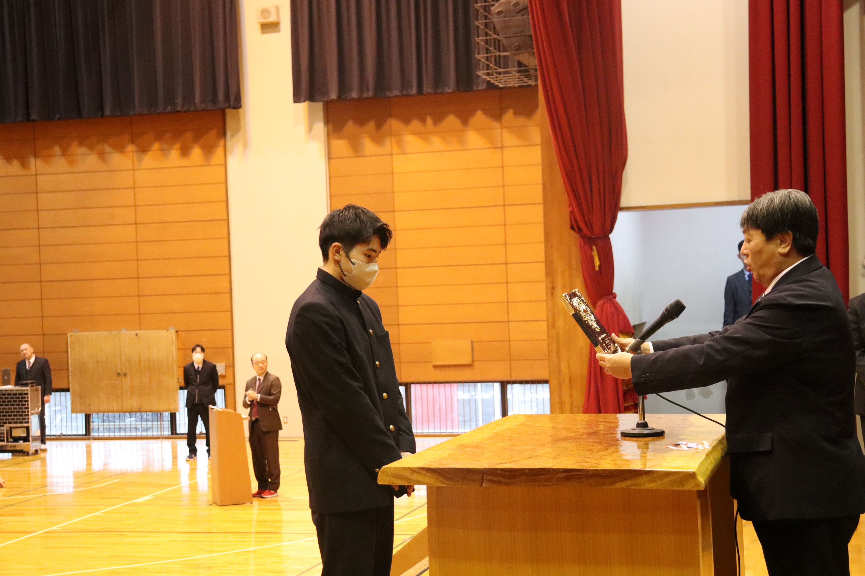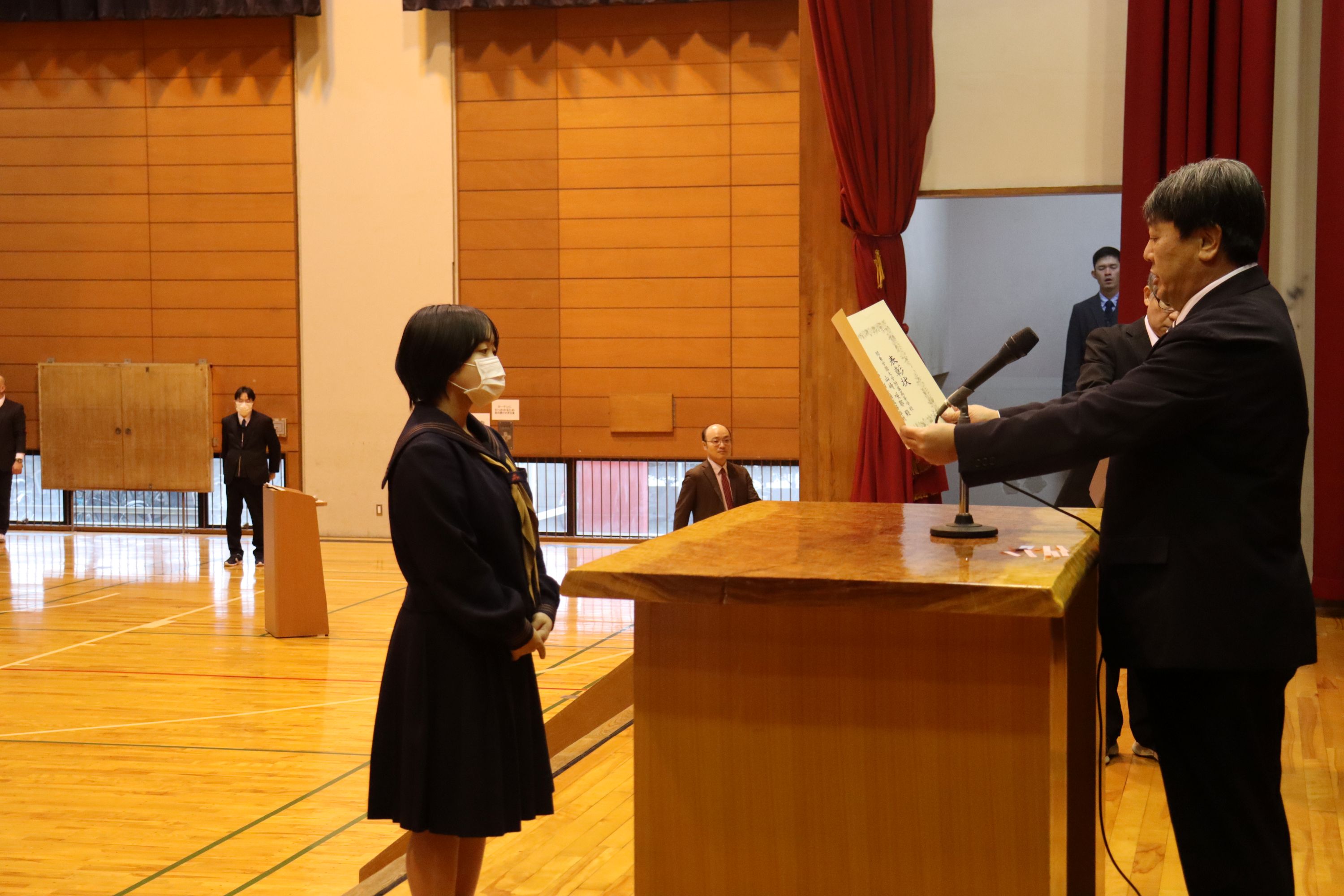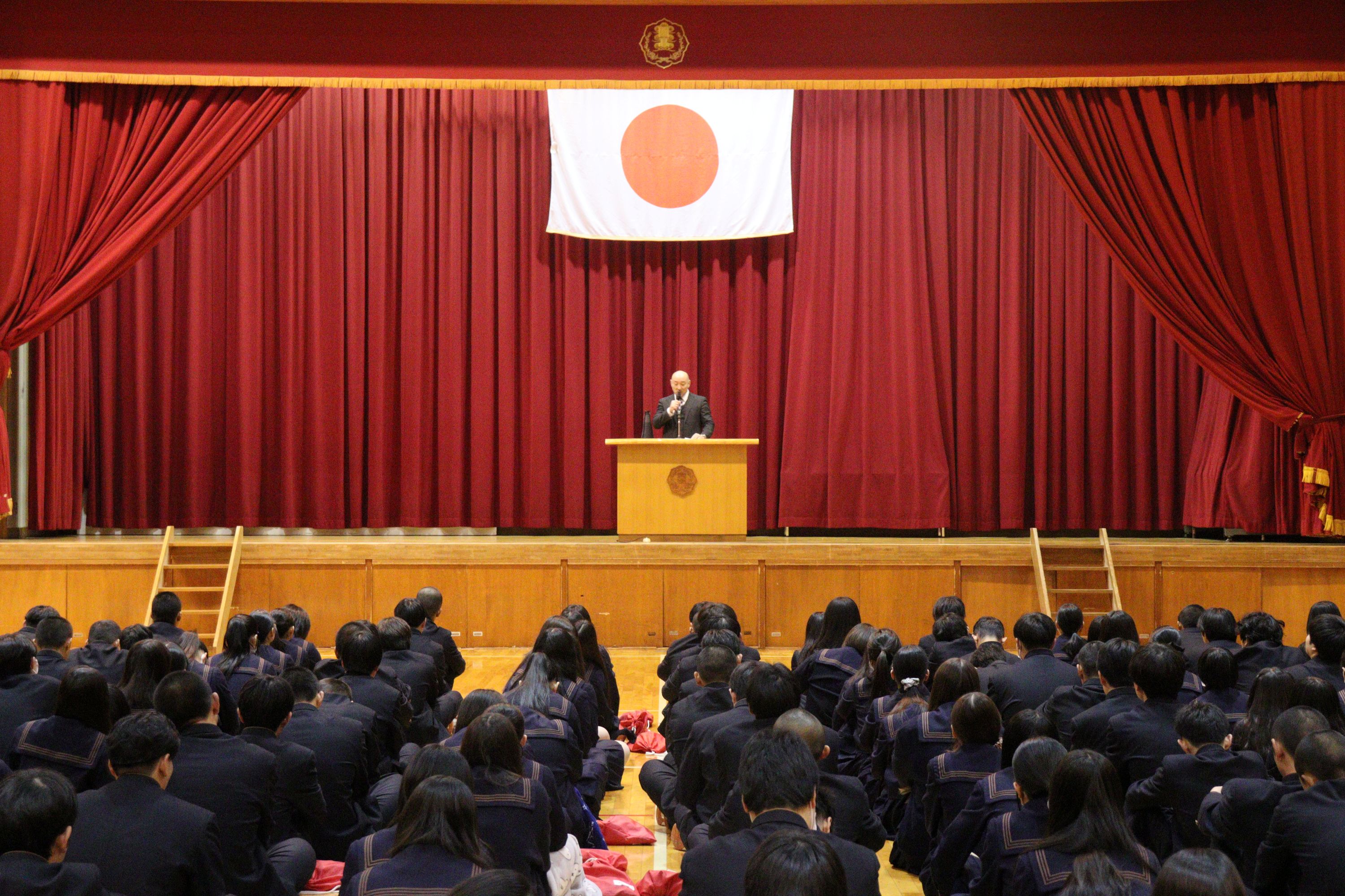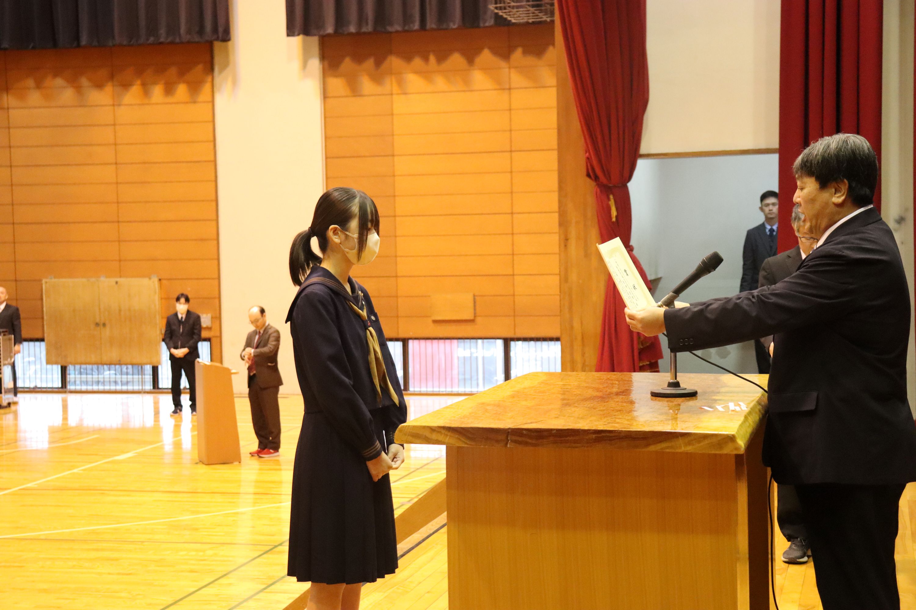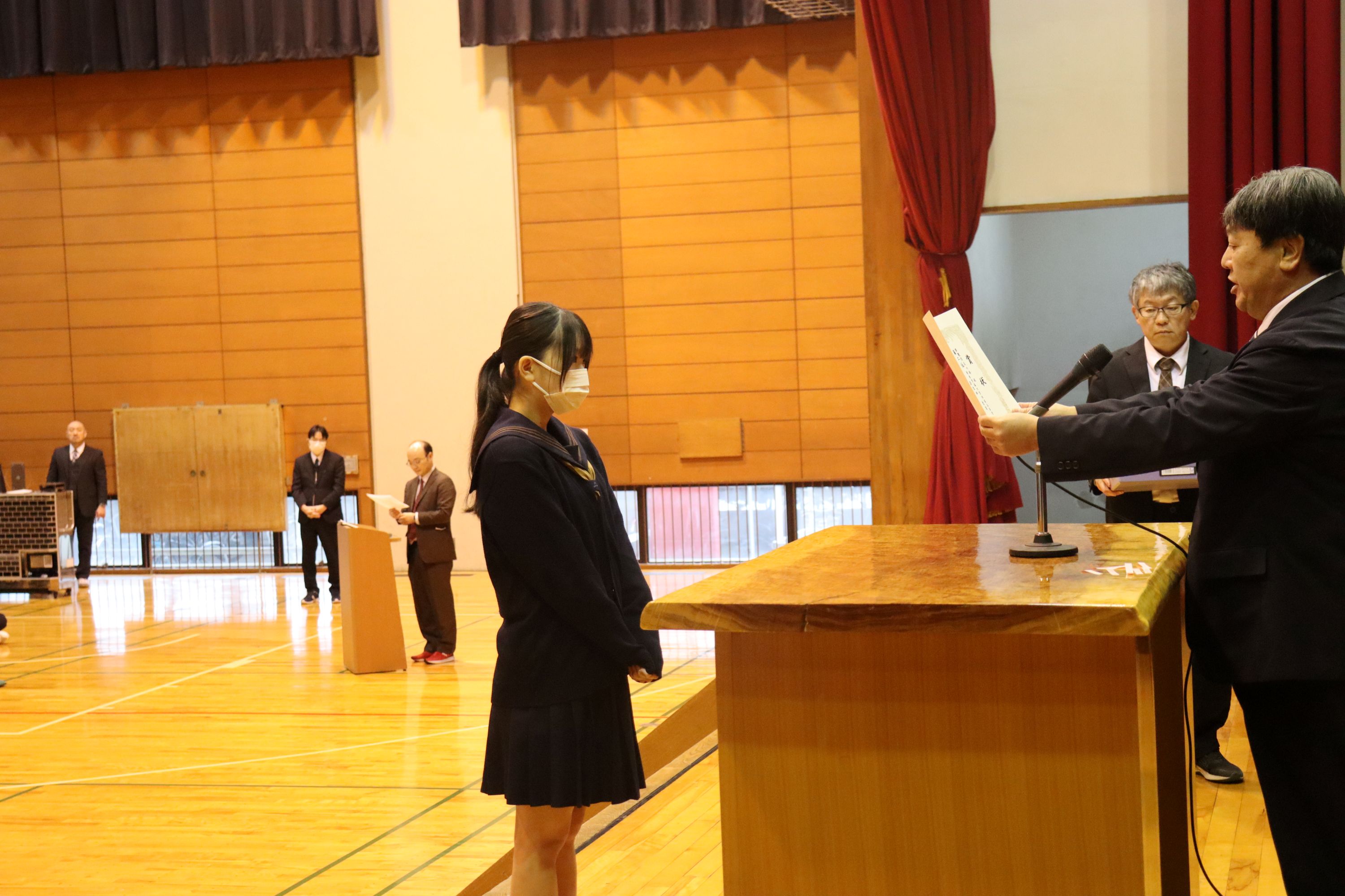 2学期は、生徒会役員立会演説・選挙、弁論大会、球技大会、2年生の修学旅行、1年生の校外学習、スタントマンによる交通安全教室、予餞会など多く行事が実施されました。また、3年生は進路決定に向けて入試や就職試験に多くの生徒が挑戦しました。今後入試が控えている受験生には最後まで気を引き締めて頑張ってほしいです。