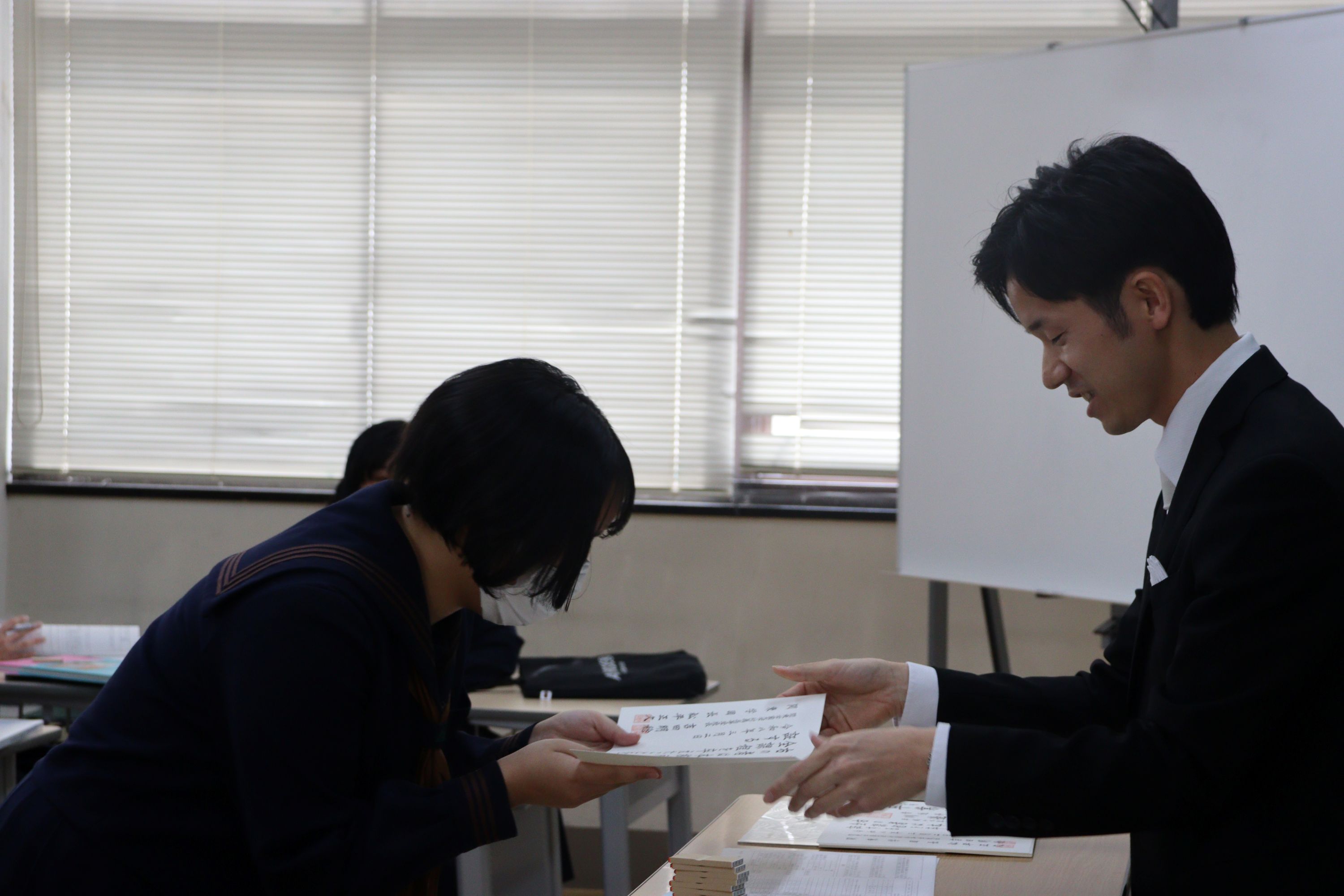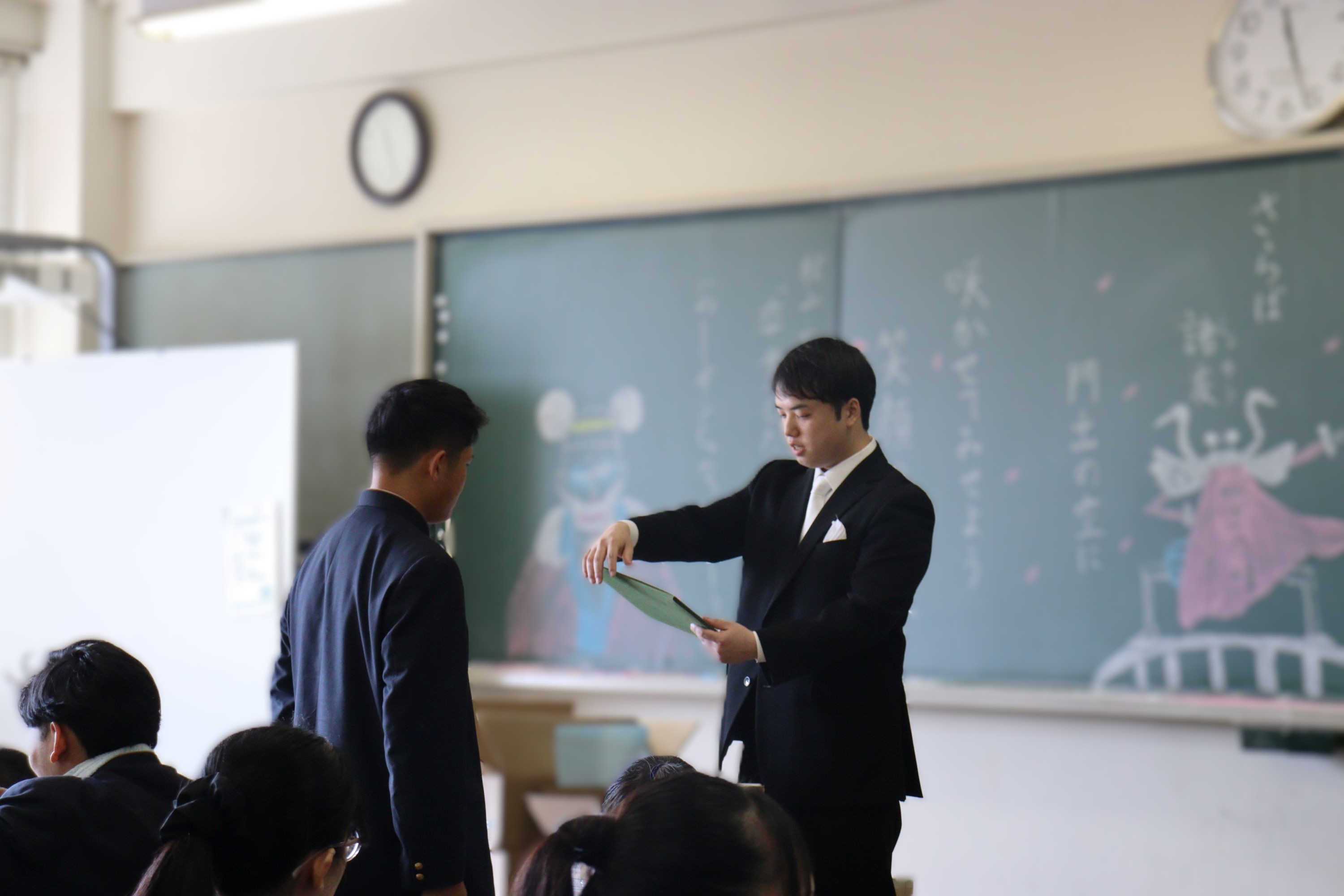 卒業生たちは厳かな式の後、各クラスで最後のHRを行い、最後の高校生活を嚙み締めていました。
