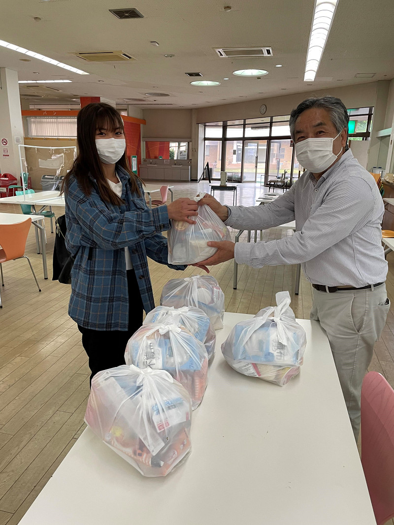 【第3回ミニフードバンク】学生への食料等配布を実施しました 2021.04.30 緊急対応 留学生やひとり暮らしの学生の力になることを目的とした、教職員によるミニフードバンクの第3回目を4月28日(水)に学生食堂で実施しました。新年度がスタートして約1か月が過ぎ、連休に差しかかる前のタイミングで、訪れた学生の様子を確認することもできました。本学は、太田市や近郊に一人暮らしをしている方を含め、すべての学生のみなさんを今後も見守っていきたいと思います。連休中も新型コロナウイルス感染症対策を継続して、安全に過ごすよう心がけてください。※ ミニフードバンクは今後も継続して実施する予定です。