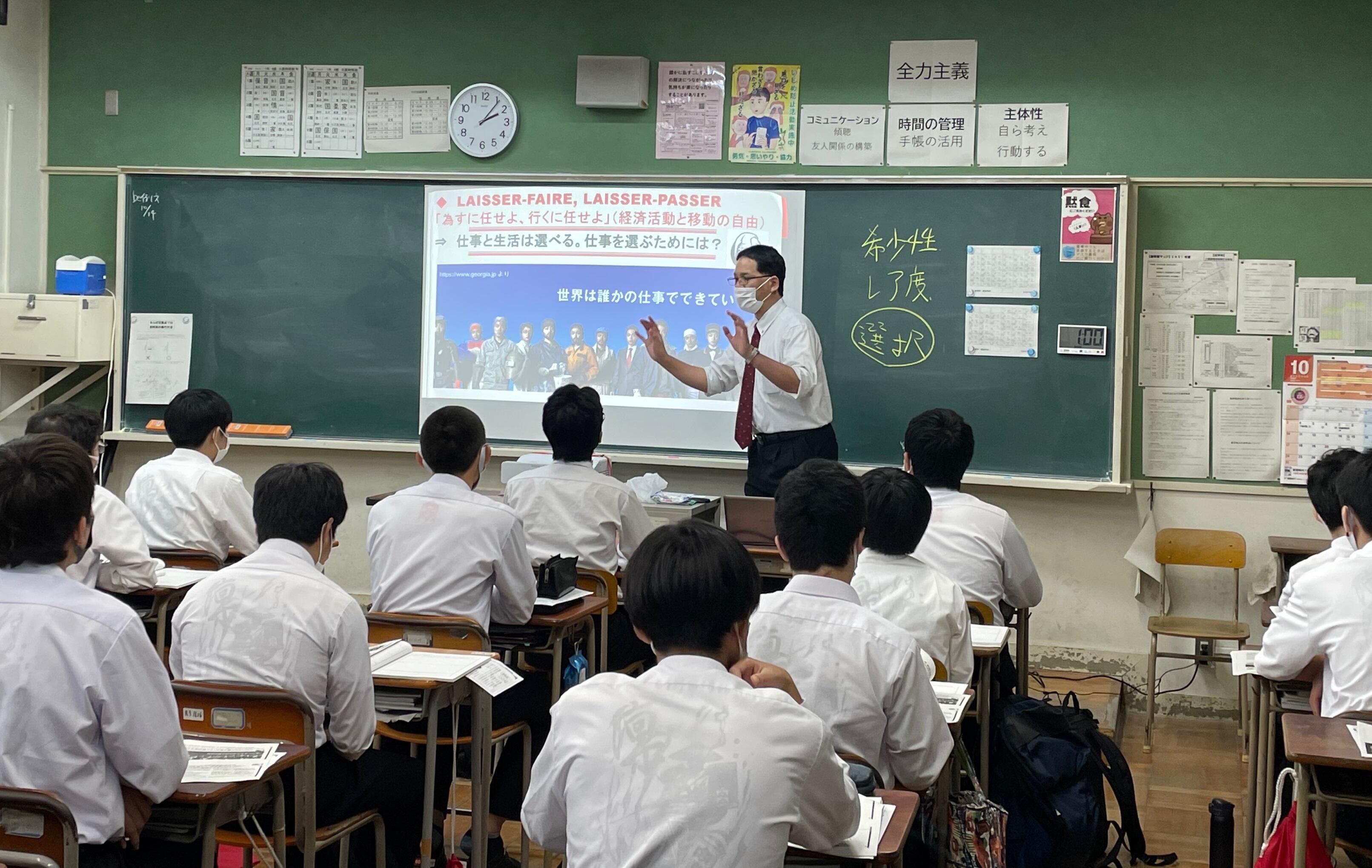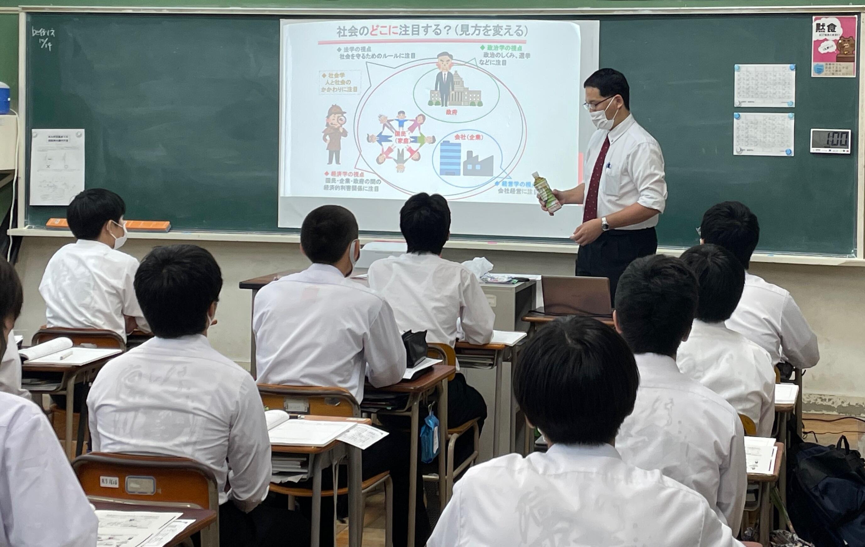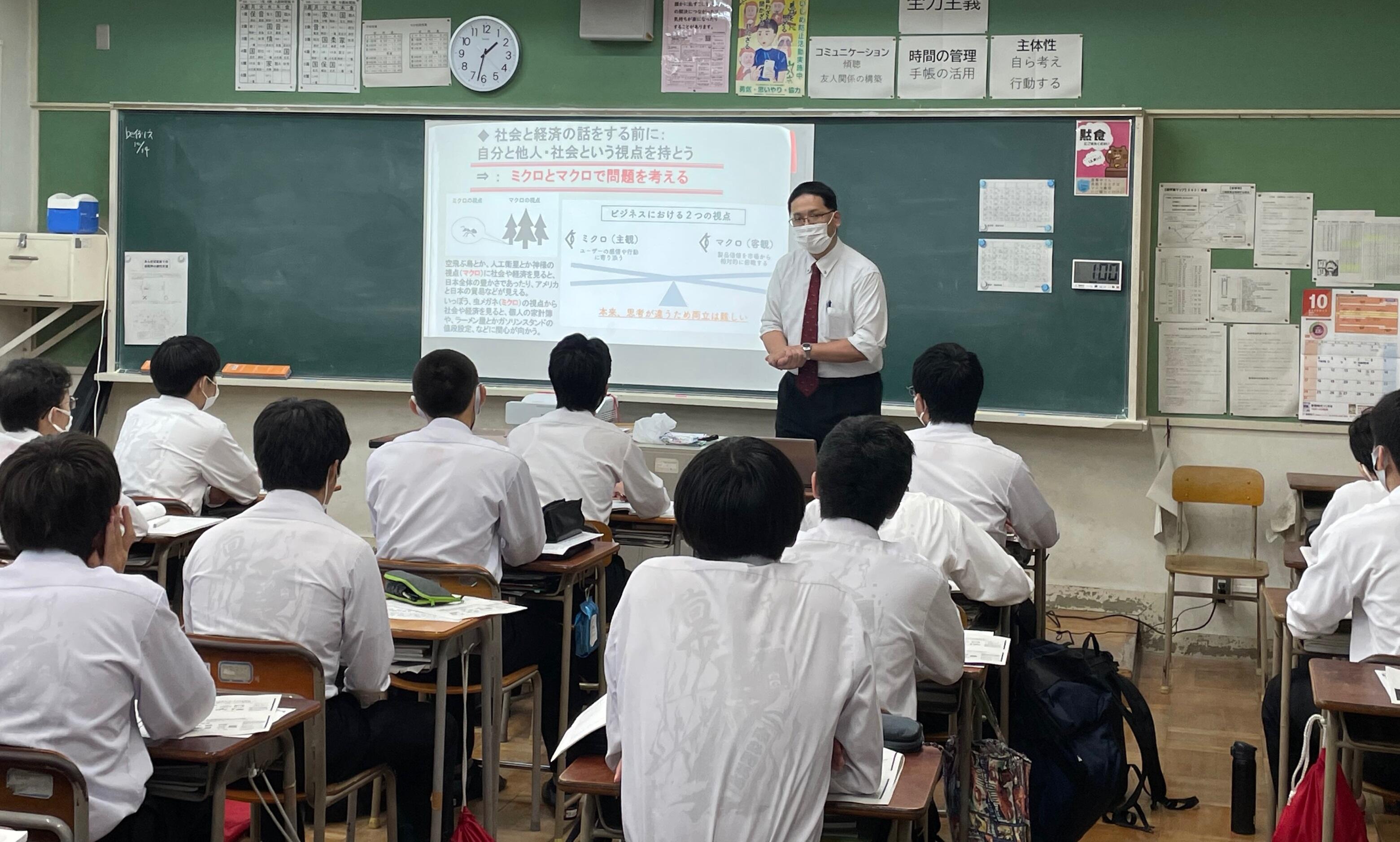 10月13日(水)に、群馬県立高崎高等学校の1年生70人あまりに、本学経済学科の山根聡之准教授が出張講義を行いました。