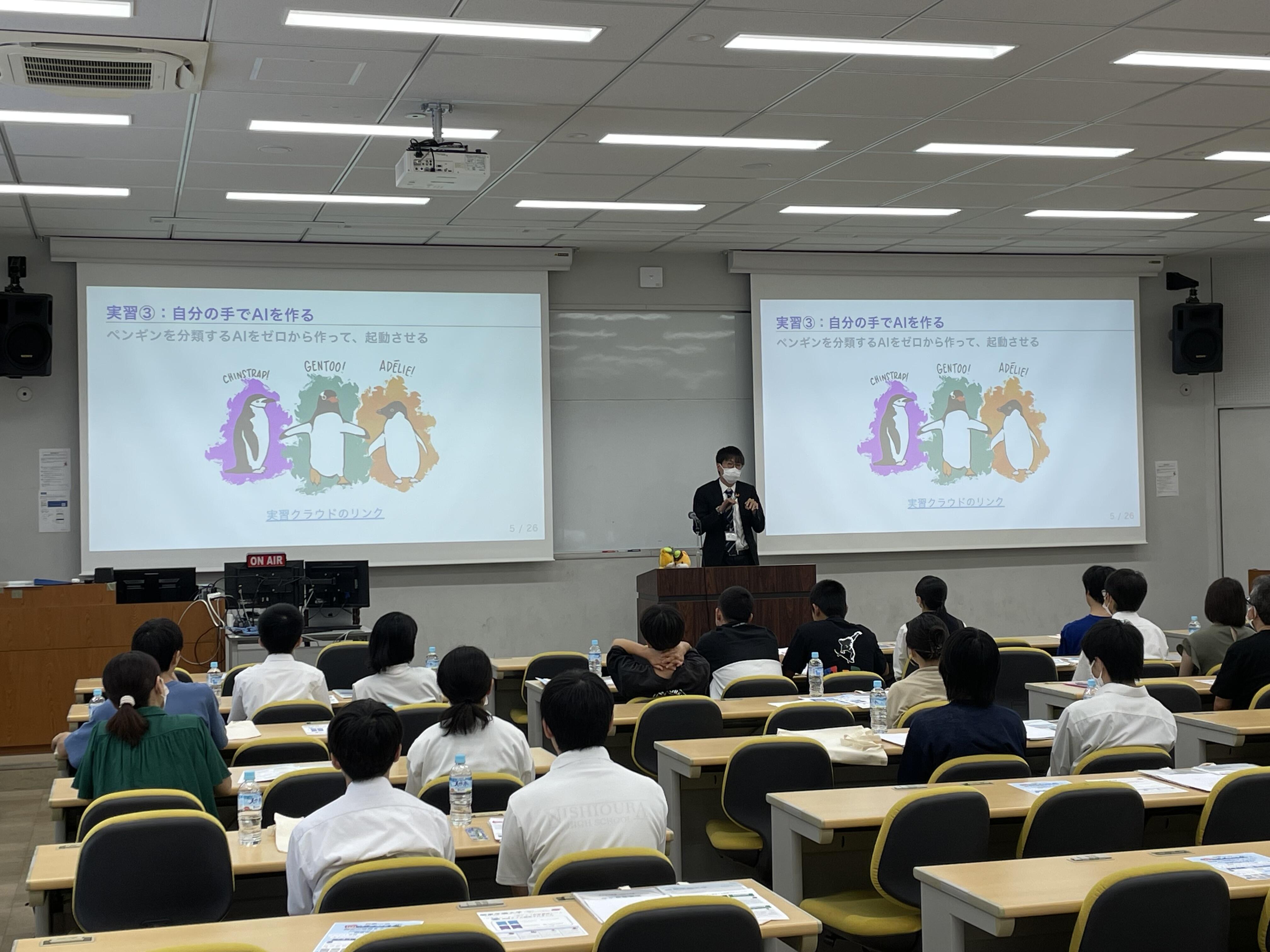 8月26日(土)に今年度第8回目のオープンキャンパスを開催しました。夏休み最後の回にご参加いただきました皆さま、ありがとうございました。前日には、文部科学省が推進する「数理・データサイエンス・AI 教育プログラム認定制度」の「リテラシーレベル」と「応用基礎レベル」のダブル認定を受け、オープンキャンパスでお知らせすることができました。