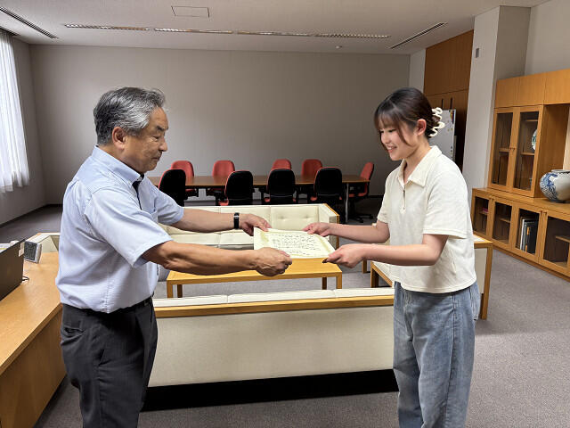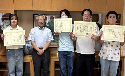 本学独自の「コンピテンシー育成プログラム」において、プログラムに積極的に参加してコンピテンシーの向上に努め、他の学生の模範となった4名に、齋藤学長から表彰状と副賞が授与されました。