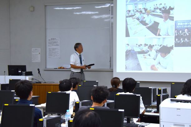 今回の模擬講義は、森永製菓株式会社にて「DARS」の商品開発に関わった西宮先生、元警察官の桑原先生、元消防官の竹内先生が担当いたしました。それぞれの先生が自らの経験を踏まえた講義を行いました。
