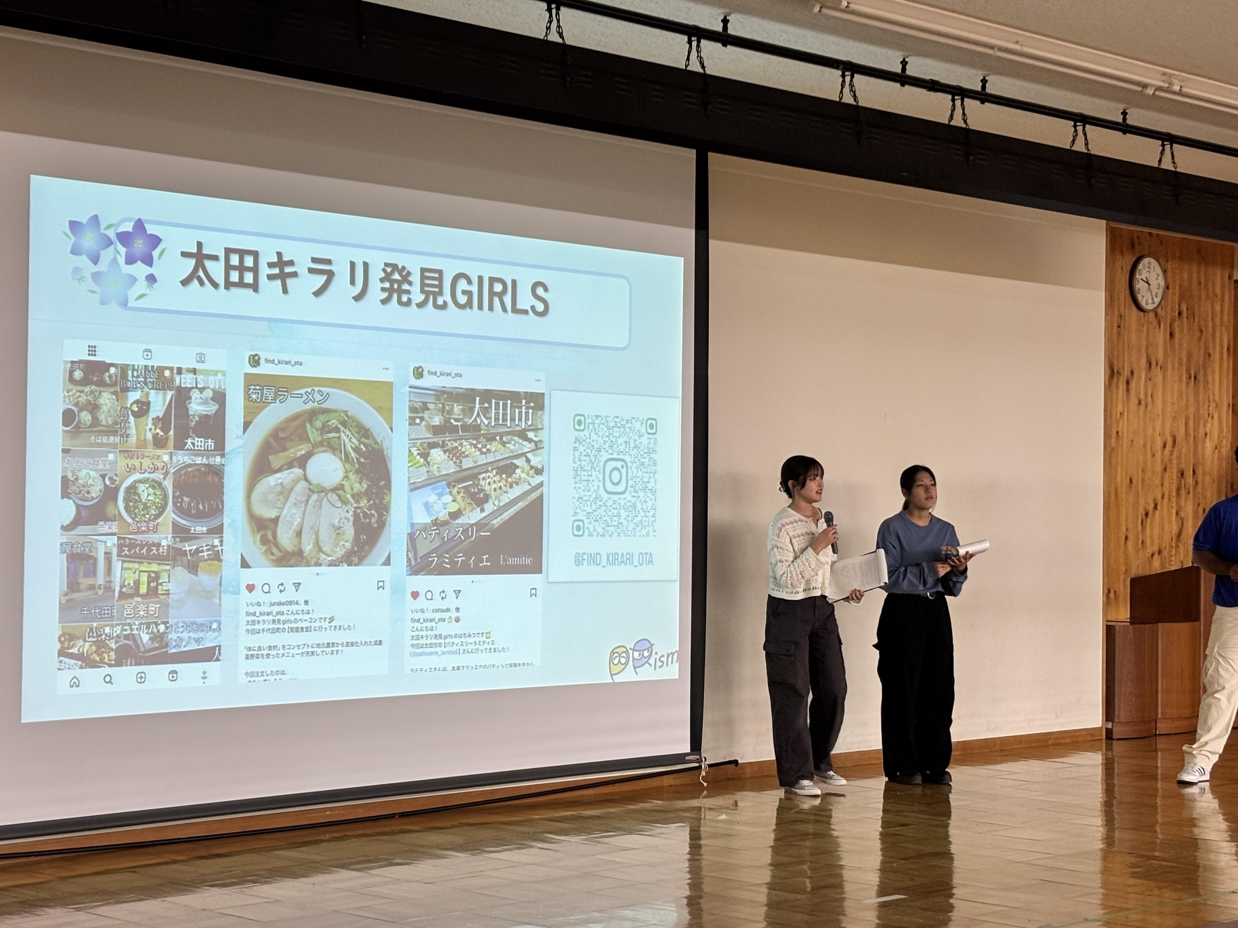 PRismメンバーは、大学での過ごし方、サークル紹介、フィールドワーク研究、インターンシップ、太田産のさつまいもを軸としたおおた太田6次産業化ラボ(ジェラート開発やツーリズムの展開、ラジオ番組制作)、PBL活動(熱烈中華食堂 日高屋こと株式会社ハイデイ日高さんへの事業提案)、そして学生たちの就職活動などについて、生徒の皆さんと対話しながらキャンパスライフを紹介しました。