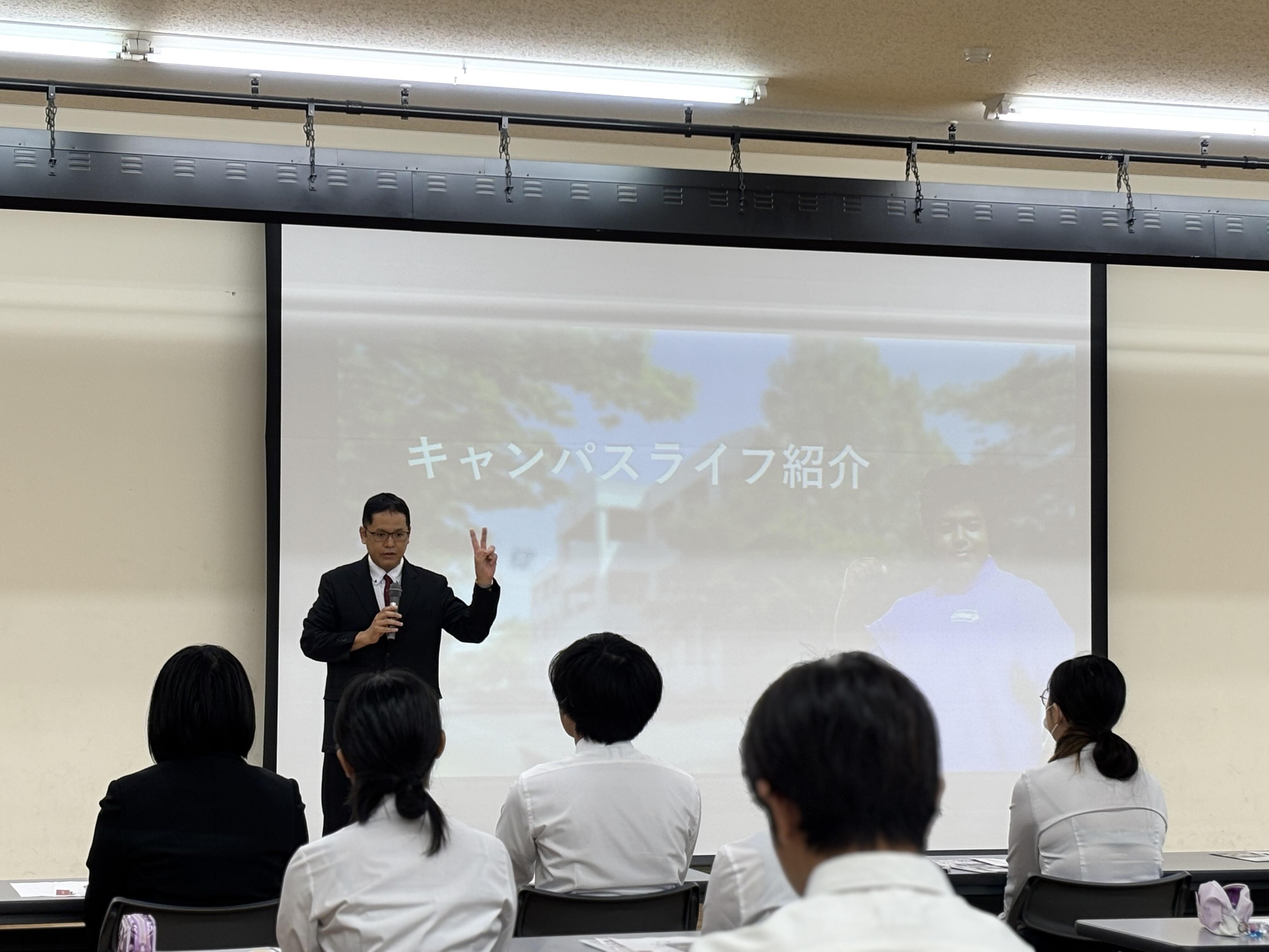 9月24日(水)に、群馬県立太田フレックス高校の3年生のおよそ50人に、本学の学生広報チームPRismメンバー6人と経済学科の山根聡之教授が出張オープンキャンパスを実施しました。