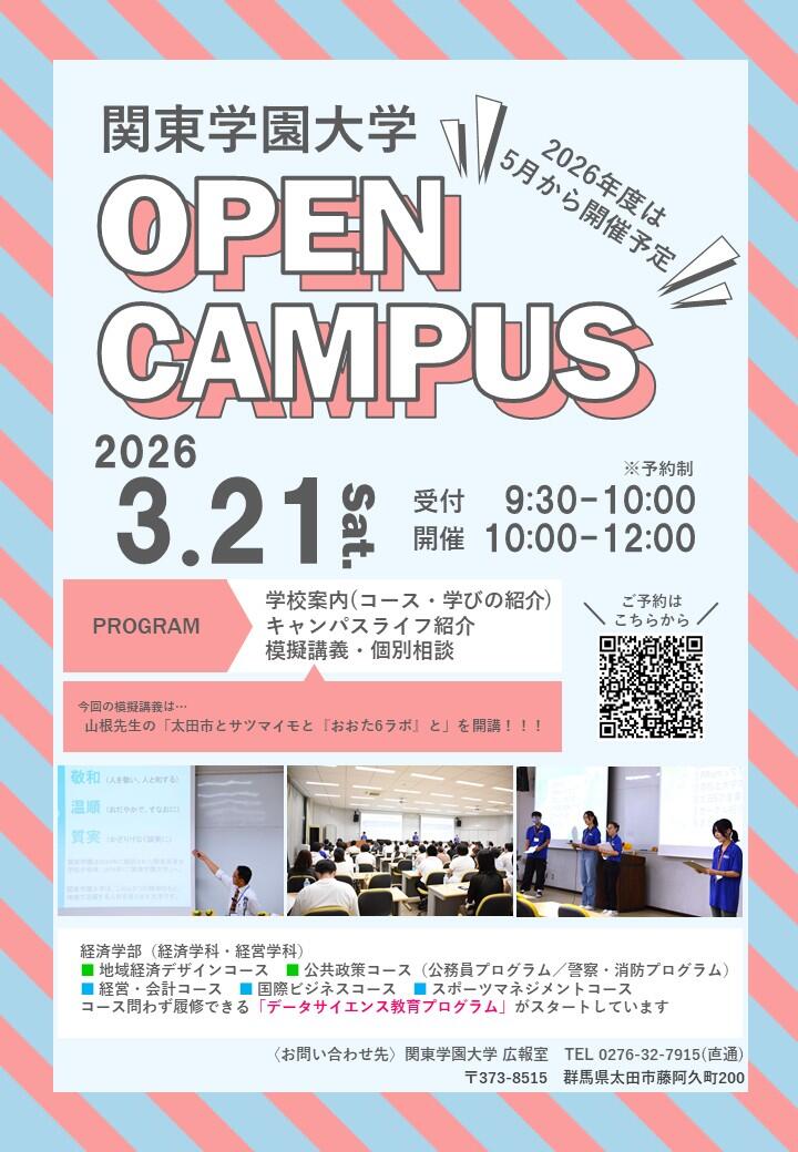 関東学園大学2026春のオープンキャンパスのご案内です!