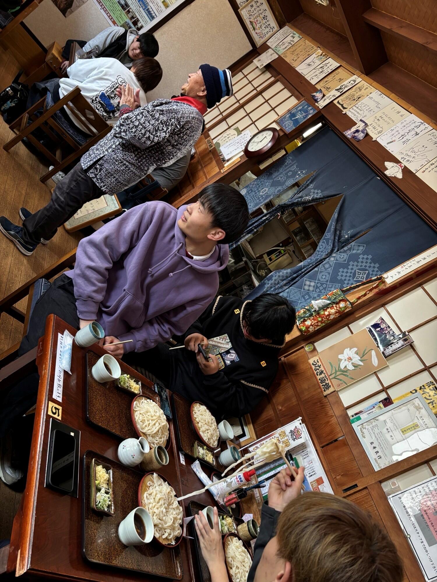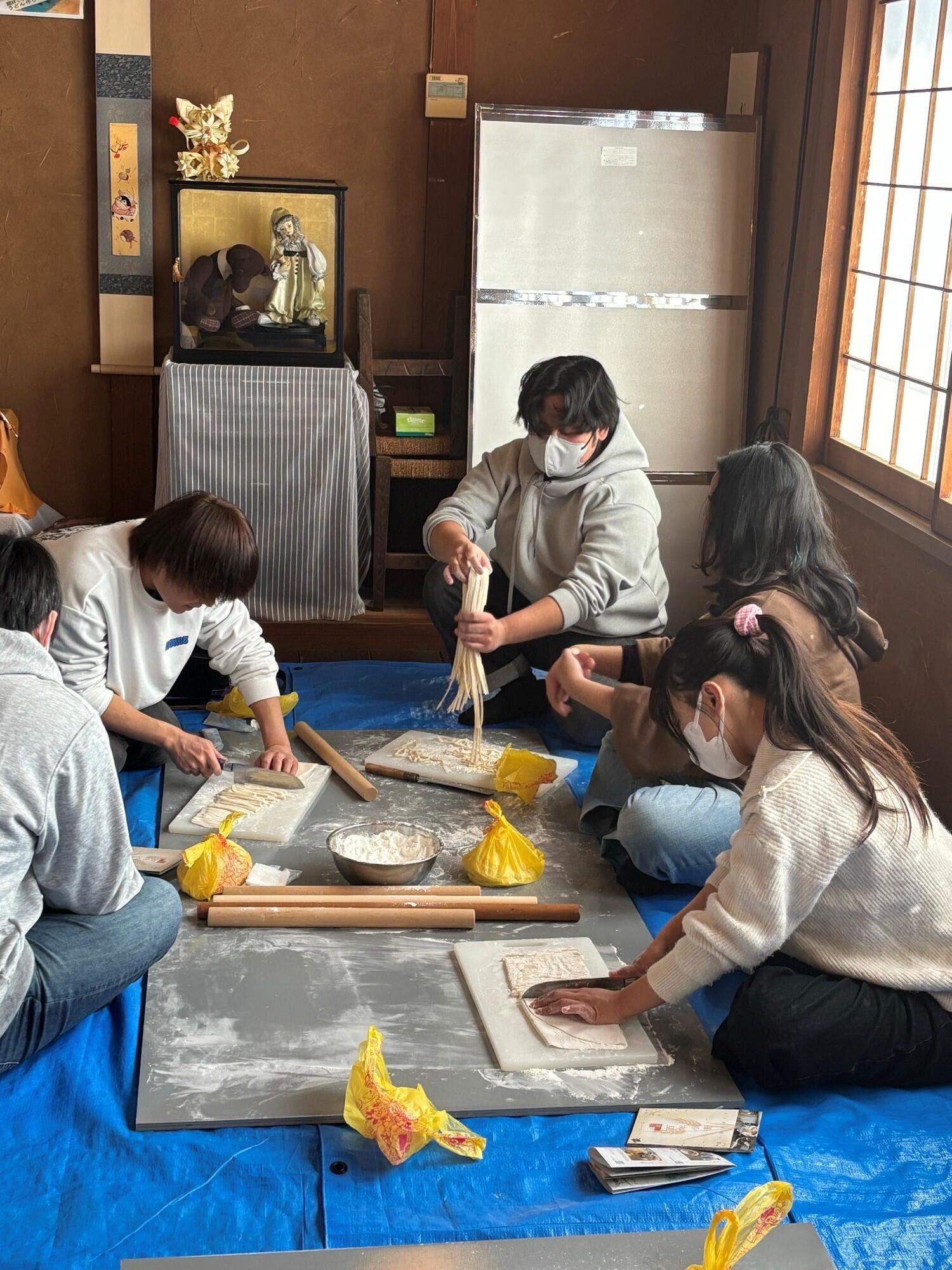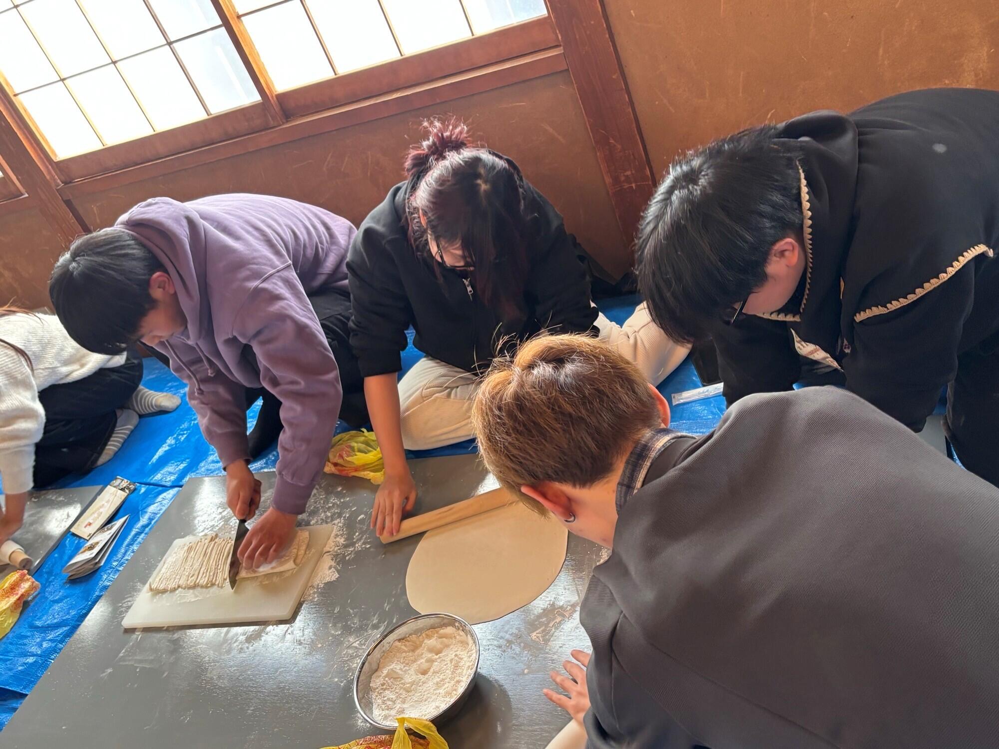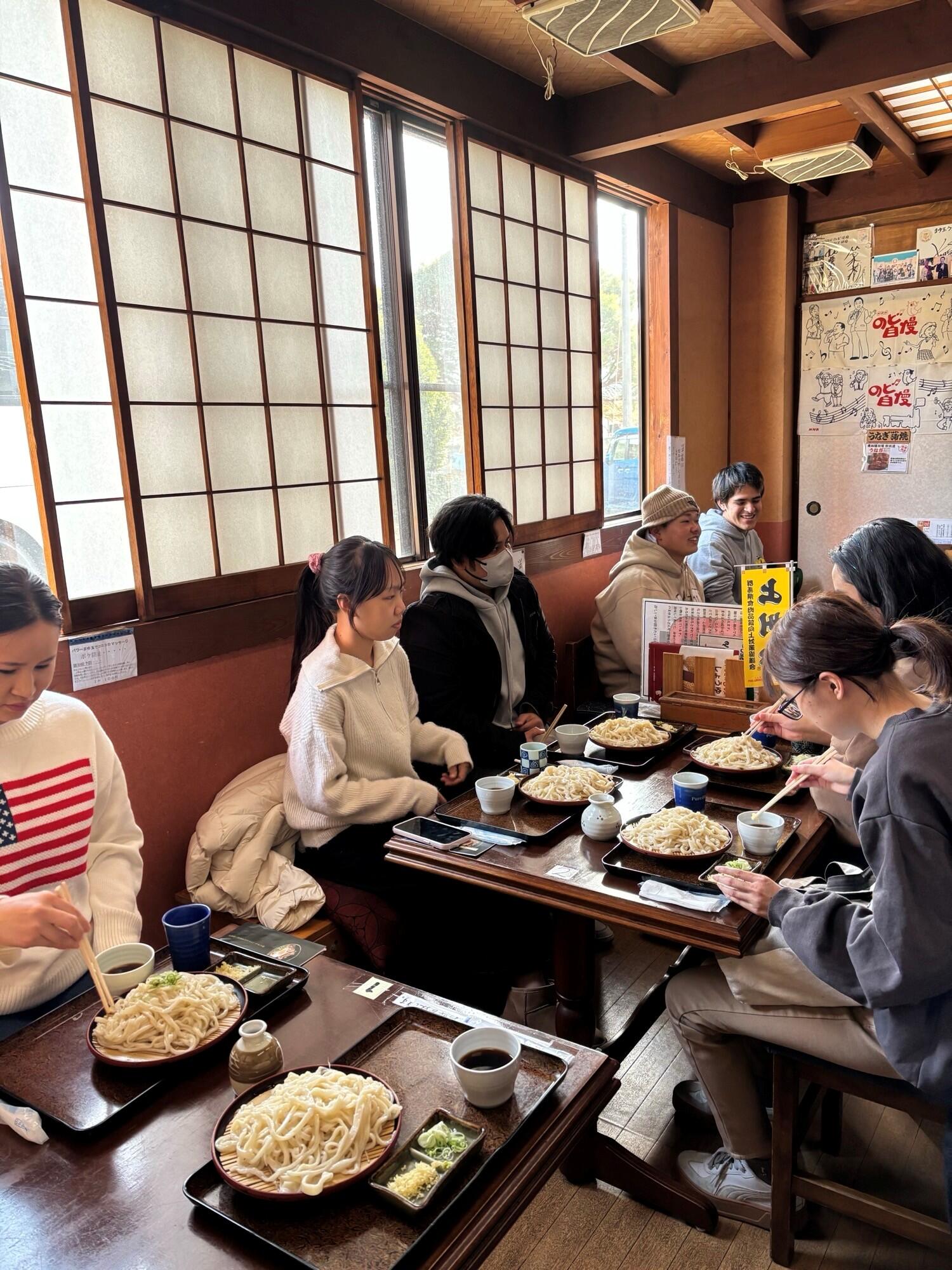 当日は、館林名物のシルク入りうどんで知られる「もり陣」にて、うどん打ちを体験し、自分たちで打ったうどんを味わい、地域の食文化に触れる貴重な機会となりました。続いて、茂林寺を訪問し、『ぶんぶく茶釜』の物語を通して、日本の伝承文化について学びました。